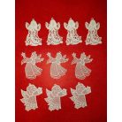 Csipke angyal, felakasztható, karácsonyfa dísznek is kiválóan alkalmas. 9-10 cm magasak. Bármilyen színben kérhető.