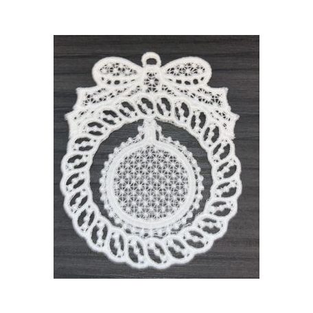 Csipke dísz keretben, felakasztható, karácsonyfa dísznek is kiválóan alkalmas. 9-10 cm magasak. Bármilyen színben kérhető.
