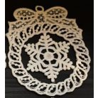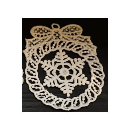 Csipke dísz keretben, felakasztható, karácsonyfa dísznek is kiválóan alkalmas. 9-10 cm magasak. Bármilyen színben kérhető.