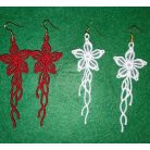 Csipke fülbevaló. 9.7 cm magas. Bármilyen színben kérhető.
