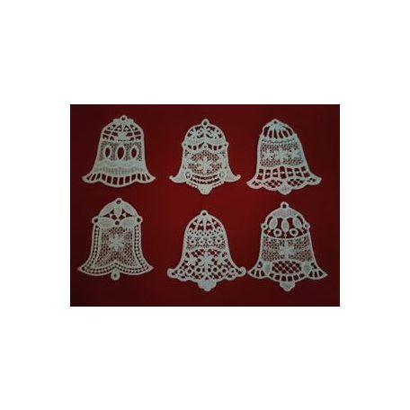 Csipke harang, csengő, felakasztható, karácsonyfa dísznek is kiválóan alkalmas. 7-9 cm magasak. Bármilyen színben kérhető.